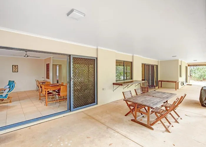 La casa de vacaciones está situada en una zona residencial de Rainbow Beach, y a unos minutos a pie del Área de Recreación de la Península de Inskip. Además, esta villa está a una distancia de 2 km del Parque Lawrie Hanson y a una distancia de 3 km del Carlo Sand Blow.